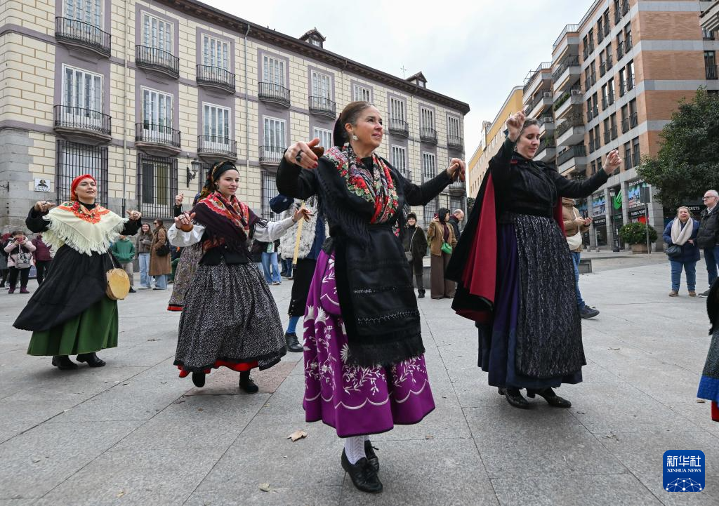 当日,来自西班牙马德里自治区及周边省份的传统民谣弹唱团与民俗表演队在马德里市中心街道上进行音乐巡游,通过演奏传统乐器和演唱歌曲营造节日气氛。