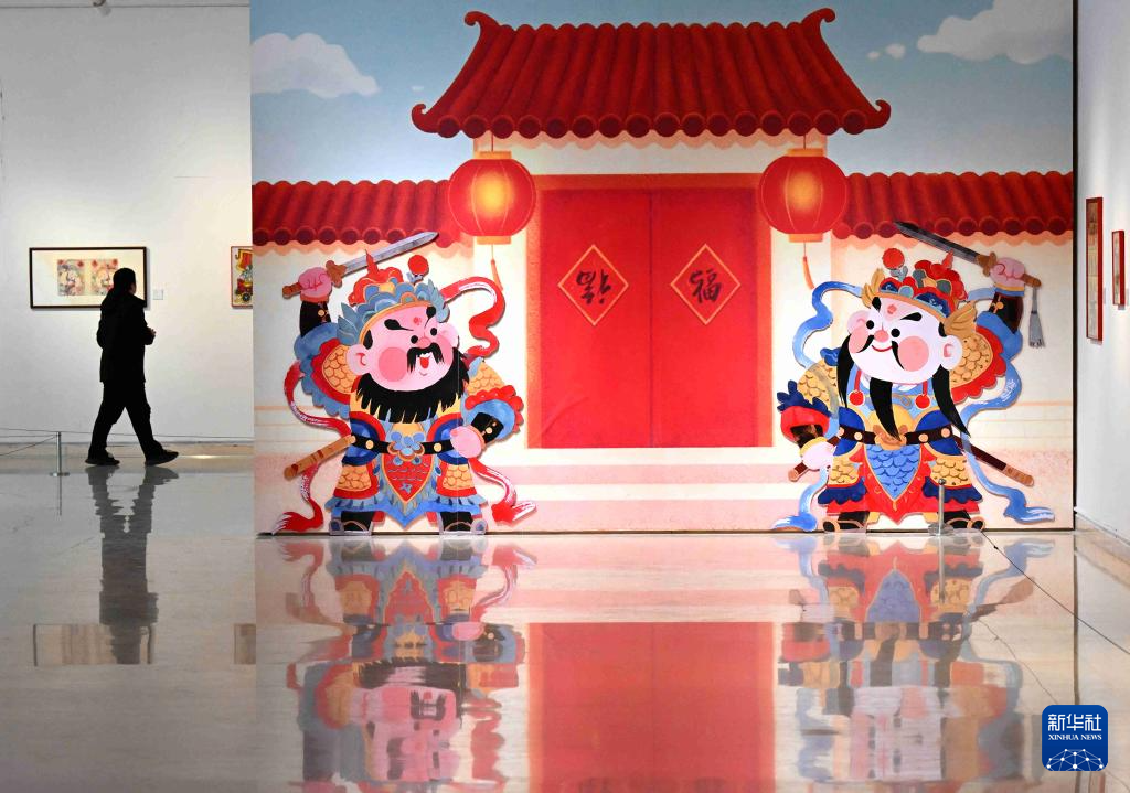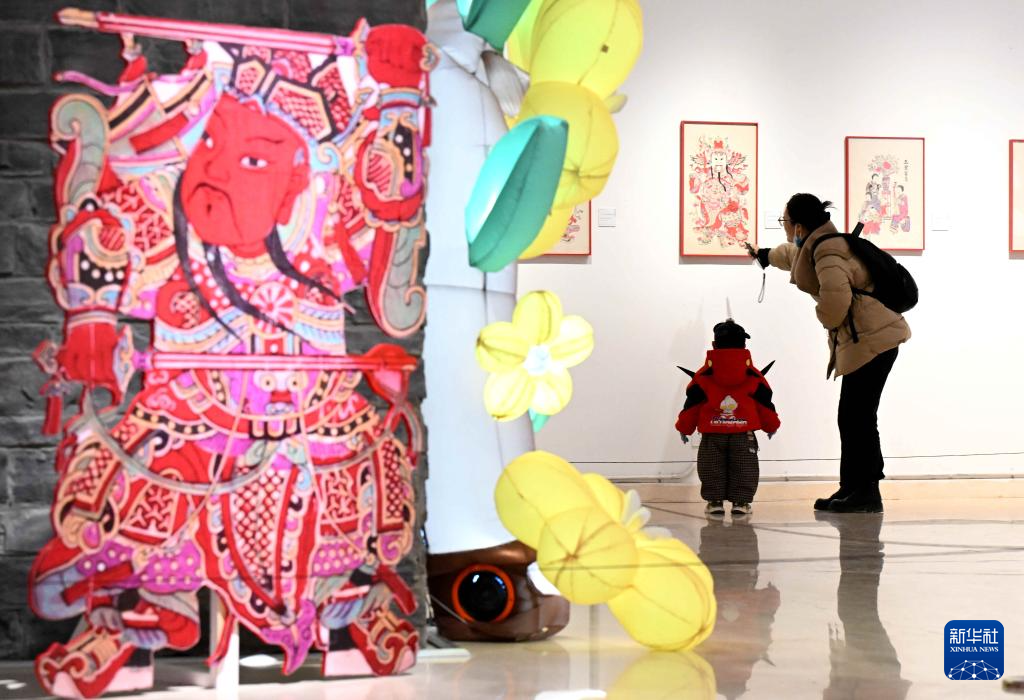 1月2日,游客在河北省石家庄市美术馆参观新年主题年画展。