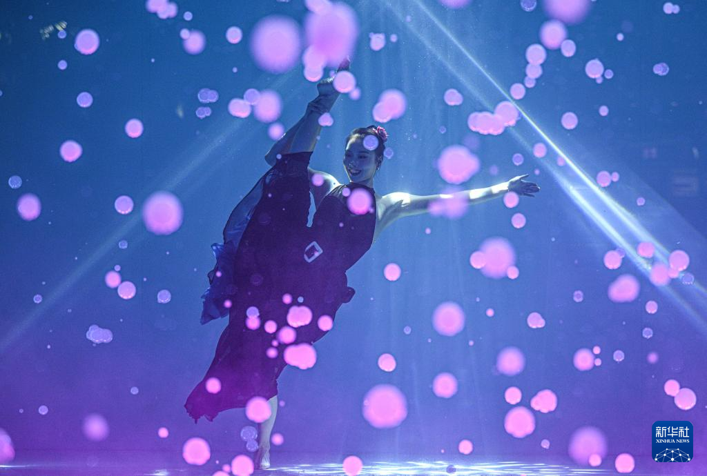 1月14日,舞者在2026中国极限舞蹈表演赛期间进行水下舞蹈表演。