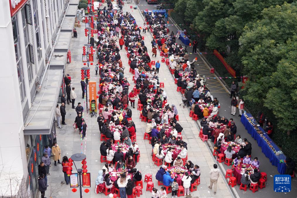 2月3日,湖北省武汉市经济技术开发区沌口街道永济社区居民品尝百家宴。