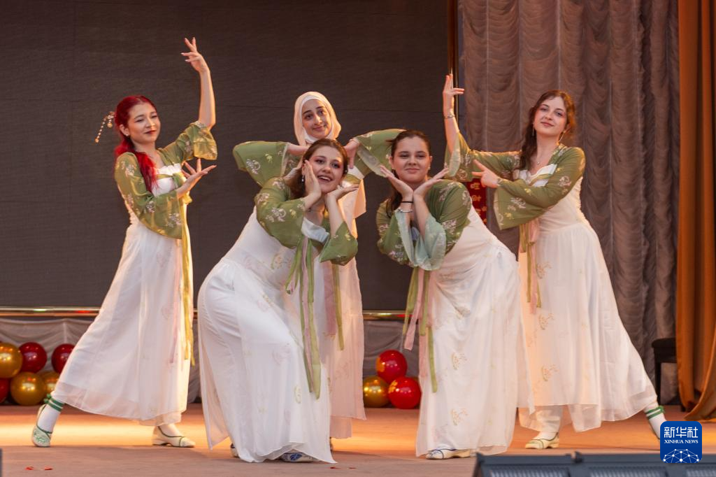 2月4日,在阿塞拜疆首都巴库举行的“骏马迎春 中阿同心”春节庆祝活动上,学生们表演舞蹈。
