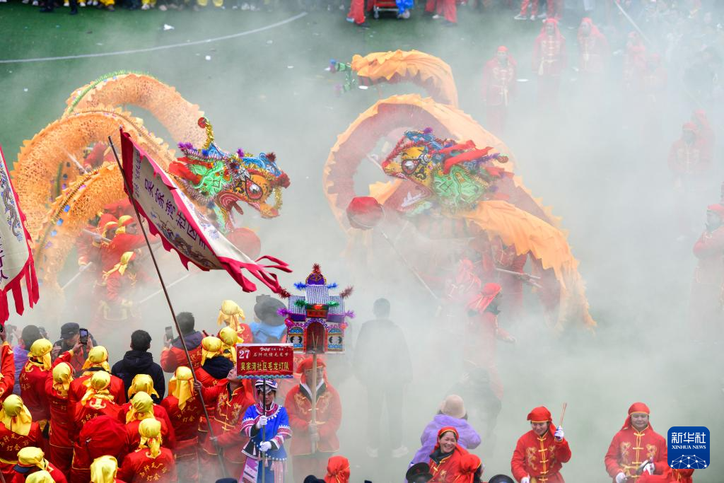 2月27日,人们在贵州省石阡县参加仡佬毛龙节舞龙大赛。