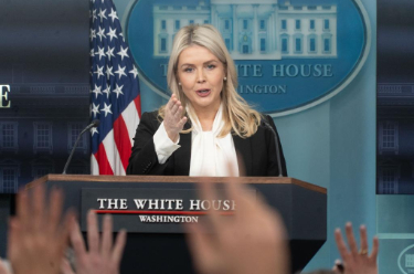 3月4日,在美国首都华盛顿,白宫新闻秘书莱维特出席记者会。