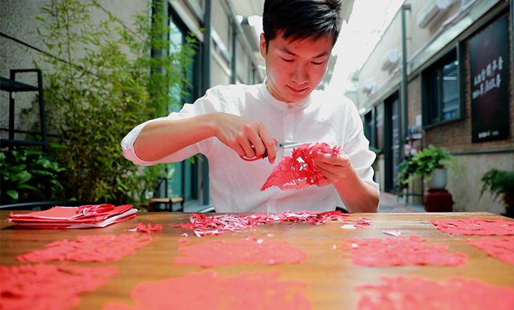 作為一個(gè)90后的剪紙傳承人,就要剪一些有新時(shí)代特點(diǎn)的剪紙作品。我擅長的是即興創(chuàng)作、脫稿剪紙,速度就是快。我們會(huì)了那些傳統(tǒng)的圖案之外,還要能夠看到任何的物體,或者別人給我一個(gè)命題就能即時(shí)創(chuàng)作。搞剪紙創(chuàng)作一定要豐富自己的知識面,這樣腦海中才會(huì)有更多的畫面跟場景。我感覺剪紙是讓我用紙和剪刀在對話,把我的情感通過紙釋放出來。其實(shí)是一種靜修,或者自我的享受。我以后要開展的工作,或許是要承擔(dān)著怎樣讓剪紙?jiān)?0后、10后、20后這些年輕一代的未來人,怎么能認(rèn)識我們這種傳統(tǒng)藝術(shù),這是我一生要去做的事情。